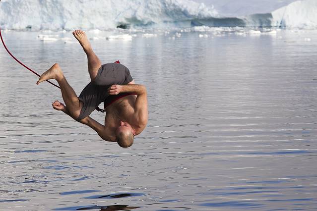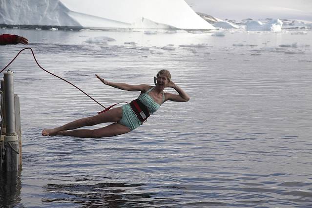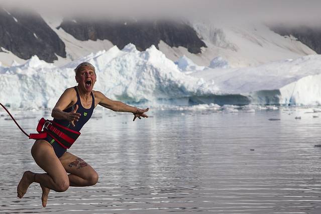 然后是西人最爱的搞怪时刻,冰海跳水!在我一再要求下老公没有去跳,陪我在船上看这帮人撒疯哈哈(前三张图片来自Simon)