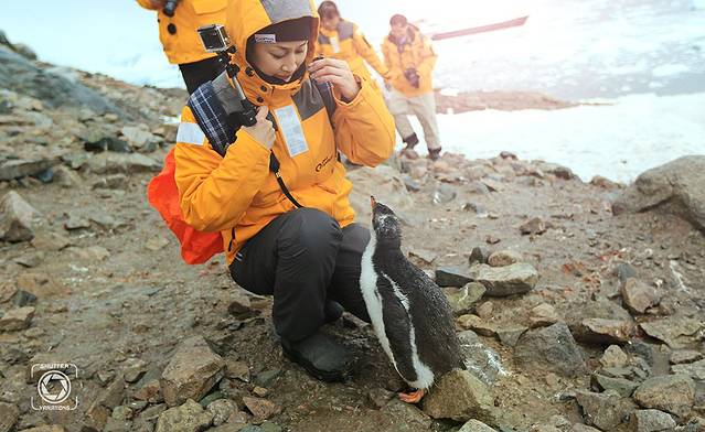 PS:大家看到我离可爱的企鹅这么近,可不要试图主动接触它们哟,南极公约里规定不能主动接近这些小动物,要保持5米的距离,如果你不动,小家伙自己找上门来也不必躲开,但绝不能接触它们,我比较招企鹅们喜欢哈哈哈,请大家来南极的时候一定遵守这个规定。