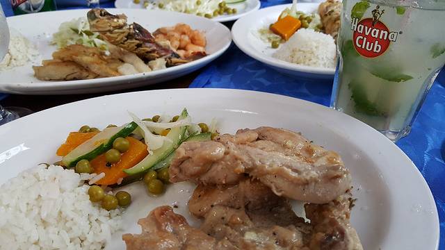 在路面上可以看到一些零散的所谓菜市场,但是规模实在小的可怜,连种类也很少。在哈瓦那的生活是极端两极化的,以服务当地有钱人和游客为主的餐厅,各式佳肴应有尽有,摆盘考究,自然价格也不俗,一例主菜大概15个CUC左右。而一般人家,可供选择的食材就少得可怜,民宿的工作人员本想以拿手的煎蛋作为早餐,但连续两天都没有在附近的市场上购买到鸡蛋,直到第三天才终于见到了鸡蛋的踪影,作为早餐,每人分得半个。路旁的小吃店里,以当地的一般百姓为主,一杯鲜榨的橙汁0.25CUC,一份鸡腿的套餐也不过2个CUC,虽然卖相稍差,但实在划算得多。