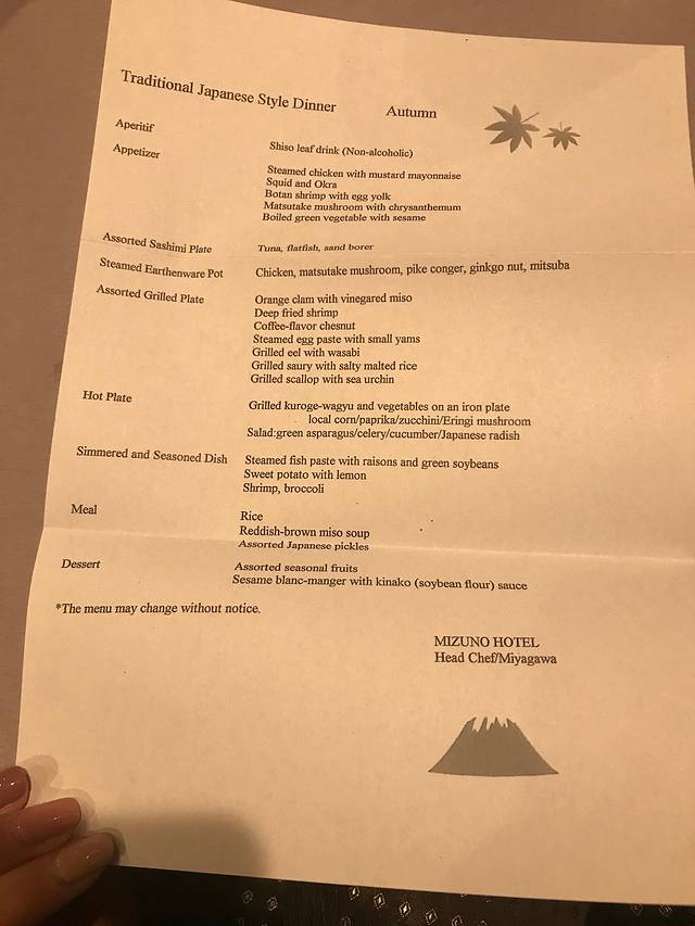 到达酒店,办理入住,因为我们在网上预订的晚餐和早餐,所以酒店会让客人选择早餐吃什么,分为两种,一种是日式早餐,一种是西式早餐,个人建议选择日式早餐,西式真的吃不习惯!