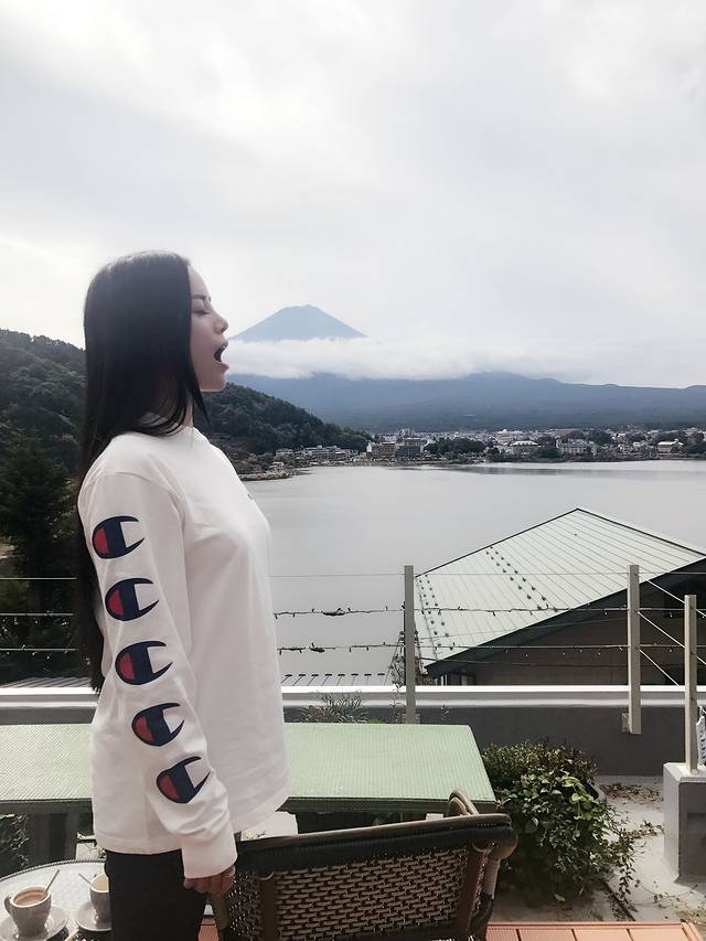 酒店的露台正对的就是富士山,所以第一件事情当然是拍照了!!