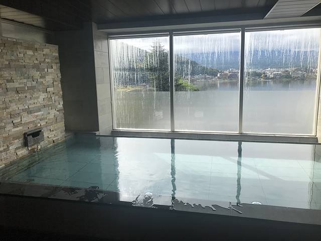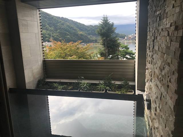 酒店的温泉池是男女分开的,有一个单独的露天温泉,对面的富士山已经被云彩遮住了。