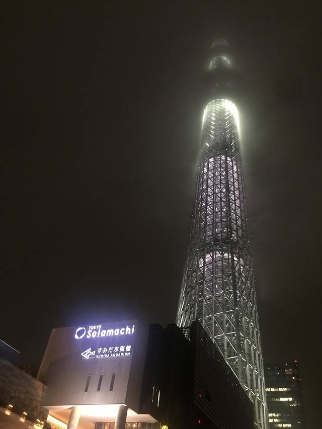 原路返回,我们又从雷门走出来,因为要做地铁去往下一站,很幸运,遇到了雨天下的晴空塔(天空树)