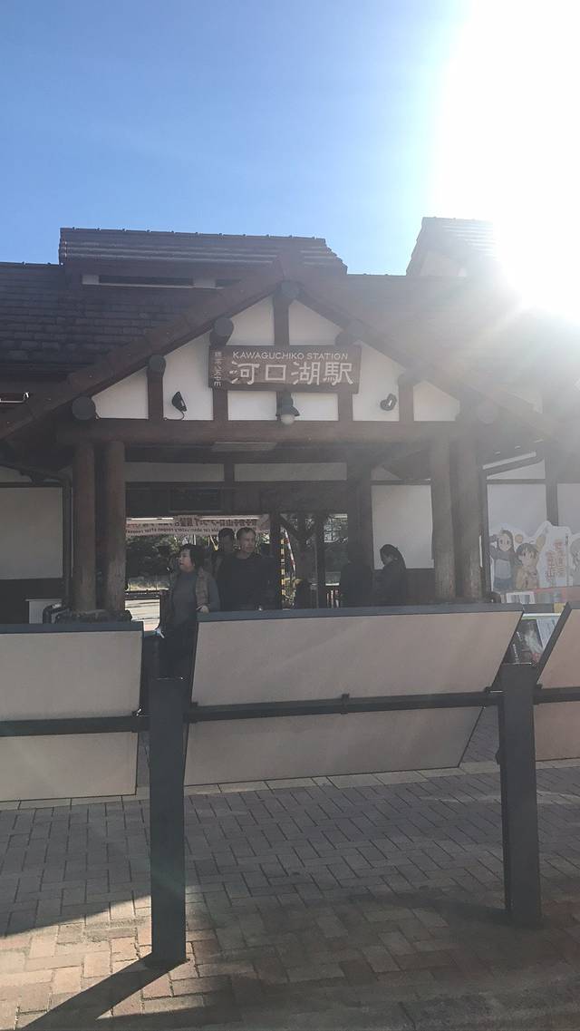 到达目的地河口湖车站!!!在这里等待就可以,因为酒店下午3:00才可以办理入住,会有酒店的车在这里等候,所以不用担心去酒店的问题。