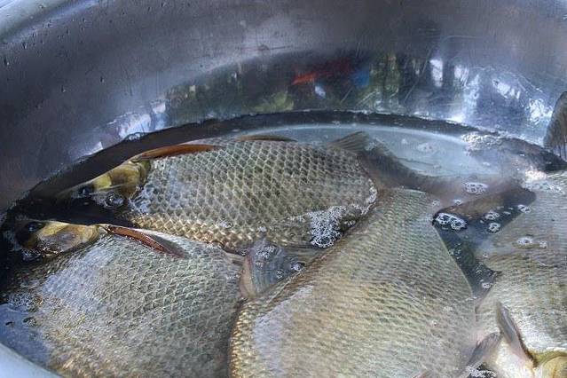 渔民刚打捞起来的武昌鱼,说只要25元一斤,给我们加工的话33元一斤,馋得我!
