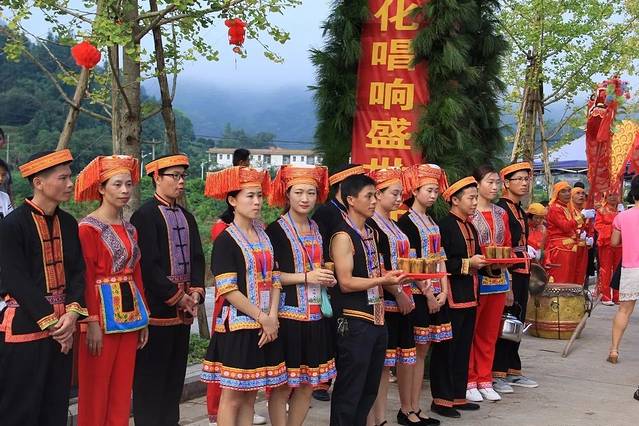 醉在民俗。农历八月初四是夏宜瑶族乡千百年流传下来的传统民俗节日,热烈、神秘而圣洁。很久以前,瑶乡青年男女在这一天精心打扮,满心欢喜相聚古榕下。遇到心仪对象,青年男子争相一展歌喉,青年女子含羞唱和,相爱的人们以歌相会、倾诉衷肠。歌为媒,树为证,美妙歌声里许下一生承诺。随着时代变迁,夏宜的农历八月初四已演变为瑶乡盛会。现在,瑶乡同胞在这一天穿上节日盛装云集圩镇,鼓乐齐鸣、载歌载舞。看,神情兴奋的瑶家阿哥、面带娇羞的瑶家阿妹带着富有瑶乡特色的“嫁郎、嫁女”婚嫁民俗表演来了;听,嘹亮的山歌唱得开怀,人们你来我往地即兴对歌呢!这一边,滚圆环、打陀螺、顶竹杠、抛绣球等瑶族趣味竞技传来阵阵欢笑,快乐时光在笑声中重现。
