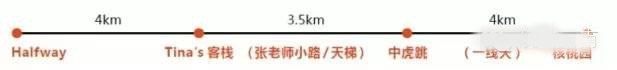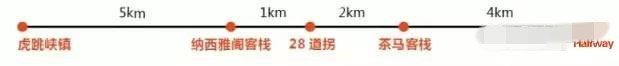 (2):前面走法同(1),下到中虎跳后走一线天到核桃园,住客栈或直接坐车回丽江。