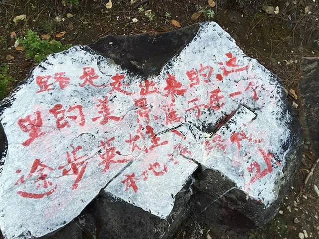 · 从核桃园出发,沿公路直行,大约1小时会经过一块巨大的岩壁,这就是滑石板。这一段路下雨天容易滑坡,经过时要小心。