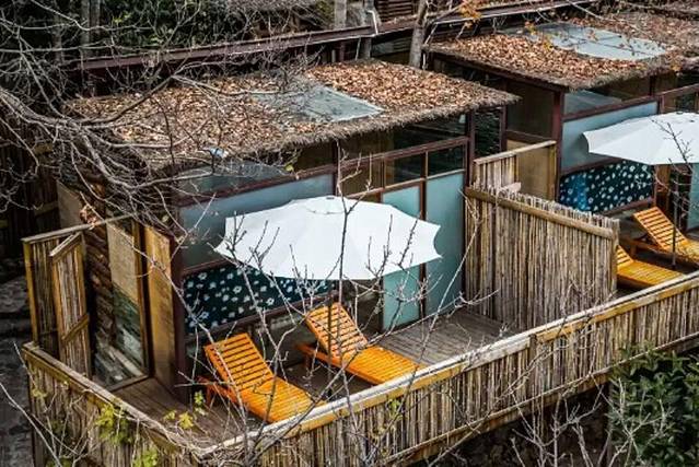 酒店依山而建,在房间内便能俯瞰丽江古城,感受到绝妙的景色和不同于日常的、独特的山谷气氛。