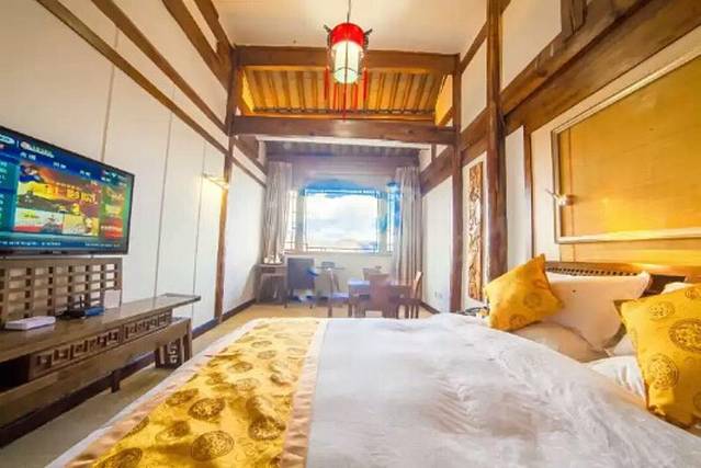 24间纳西风格的豪华客房,装饰简洁干净,大多以深色木家具为主,素雅大方,与这庭院园林温泉的风格如出一辙,完全是一派古时大户人家的风范。