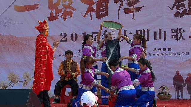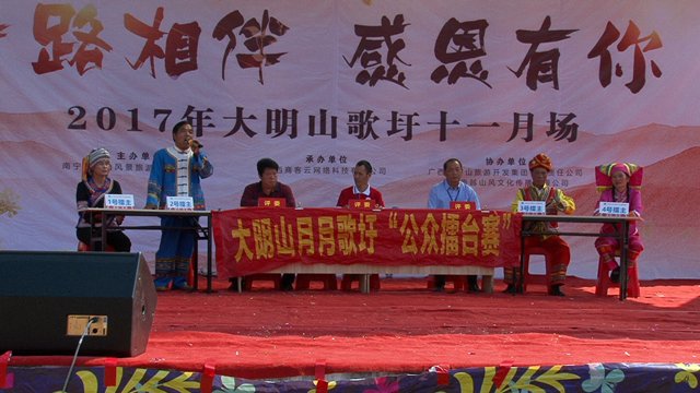 2017年11月1日,“一路相伴,感恩有你”2017大明山歌圩11月场圆满落幕。此次活动形式多样,精彩不断,除了有山歌公众擂台赛、非遗展演之外,还有体现主题的情景剧、情景舞蹈和情景小品等。
