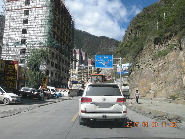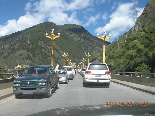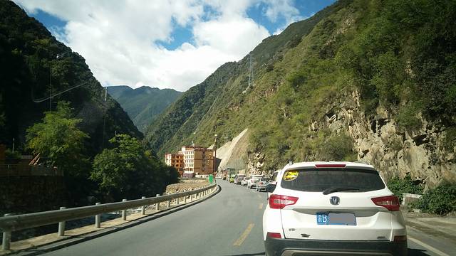 在经过雅江县城第一次遇到堵车!同时也看到了重庆的车!时间11点04分左右!