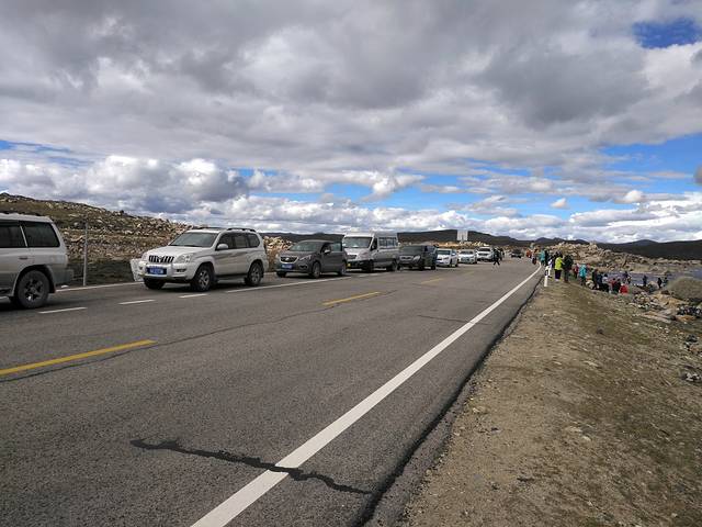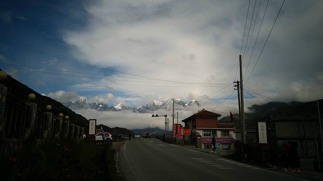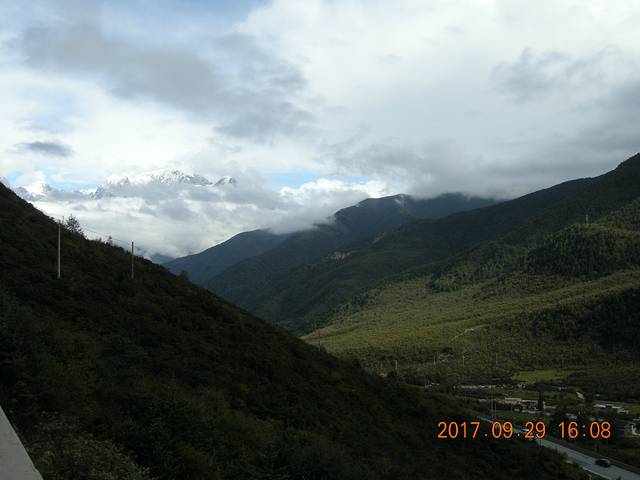 这是康定出来后的一个观景台(玉顶雪山观景台)!有很多车在此拍摄!因雪山就在眼前!注意这时的天气非常不好,乌云正在袭来!有变天的迹象!