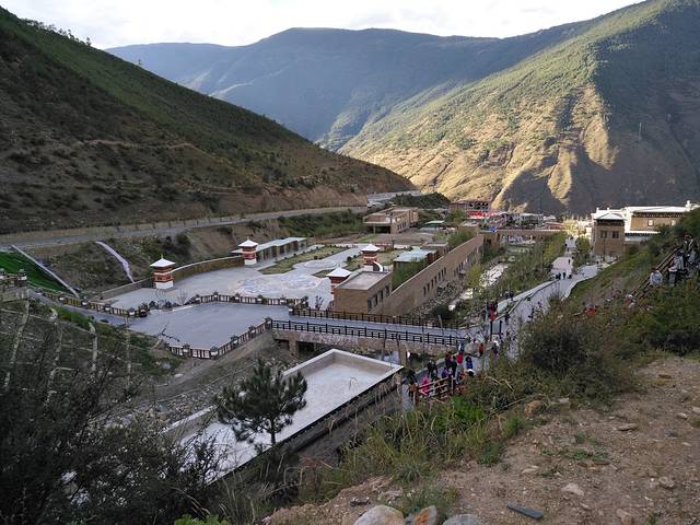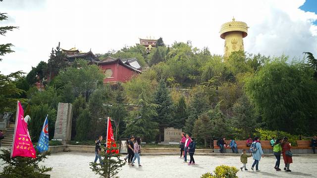 独克综古城旁边不远有个龟山公园其实是一座小山,爬上去也就十分钟左右,其间有一巨大的金色转经筒(也叫嘛呢经筒)!