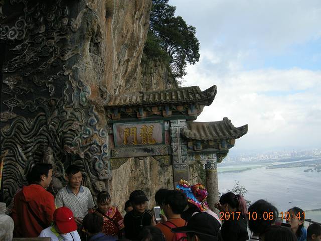 很多人啊!路又窄!同时人们还要去摸一下“龙门”二字!