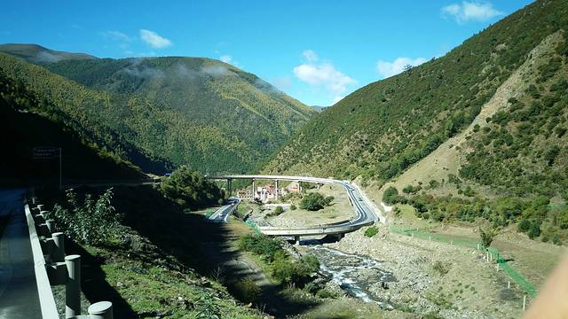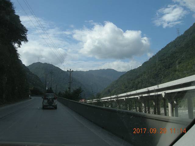 这是在天全县境内海拨大约在1029米!蓝天、白云也引入眼前!心情也舒畅了一些!