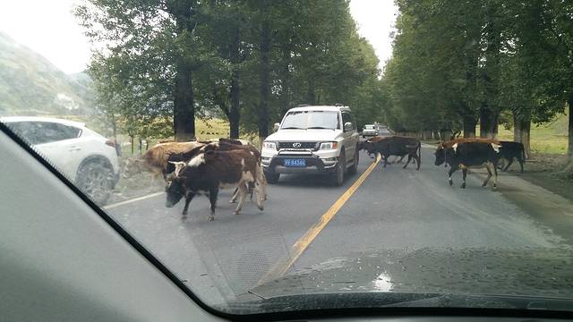在路上遇到这样的场景!她们是老大了哟!停车吧!