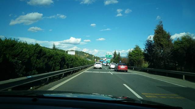 就这么地来往车辆又多!到了山上又是多云的天啊!注意!海拨也从1029升到2182米了哟!