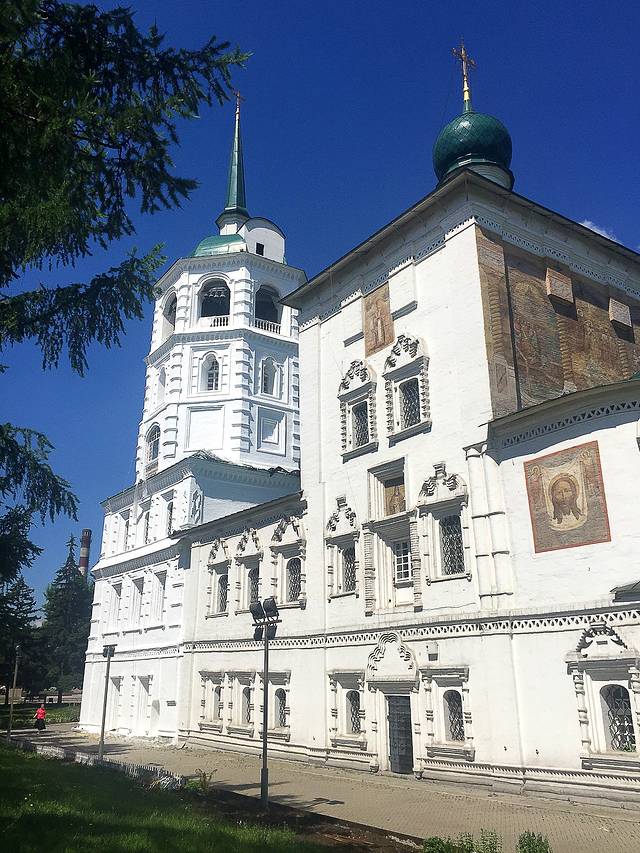 在市区可算得上是地标性建筑,西伯利亚巴洛克式的装饰风格,通体洁白,在繁杂的街道上老远就能一眼看见它。