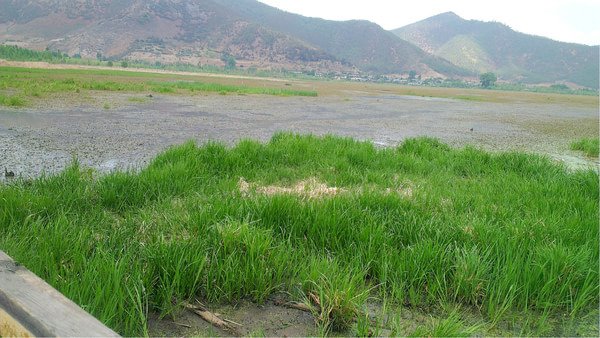 泸沽湖的走婚桥畔湿地~走婚桥全长300米左右,