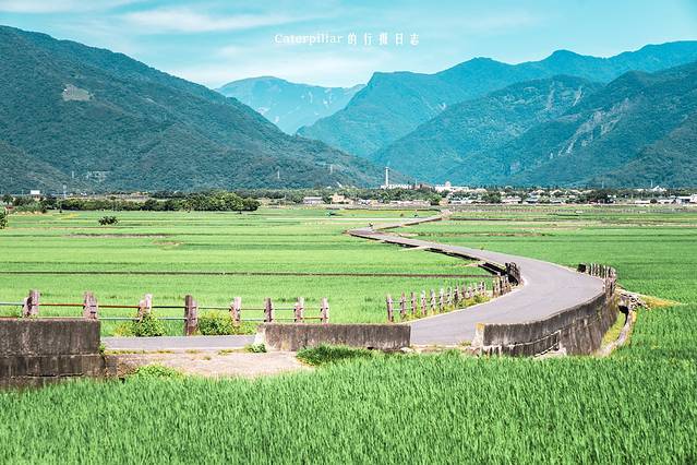从花莲到池上,火车沿途经过稻田和小溪,一路好风光。