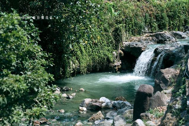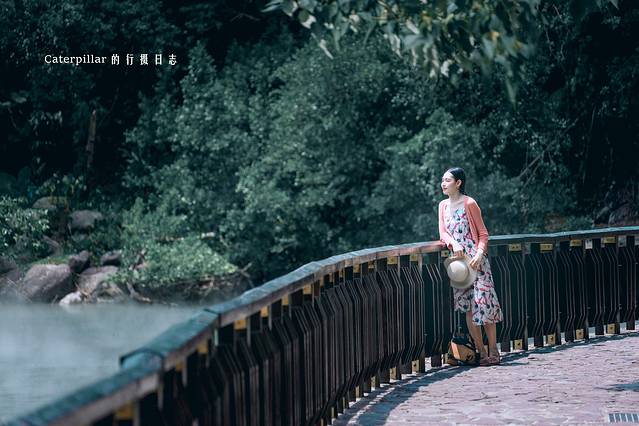 在北投图书馆出来后,有一条绿色的小溪,沿着小溪逆流而上,穿过木质的凉亭,就是地热谷。