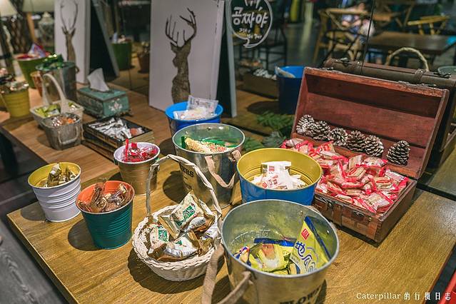 最喜欢的还是地下一楼的酒店大堂,森绿色复古风,装饰得很美观,还有桌面足球、飞镖等休闲娱乐,最重要的是还有好多零食任吃、汽水、奶茶、咖啡、泡面随意自取,而且每种零食都还蛮好吃的,绝不敷衍,下雨天不外出,泡在这里就感觉好休闲放松。