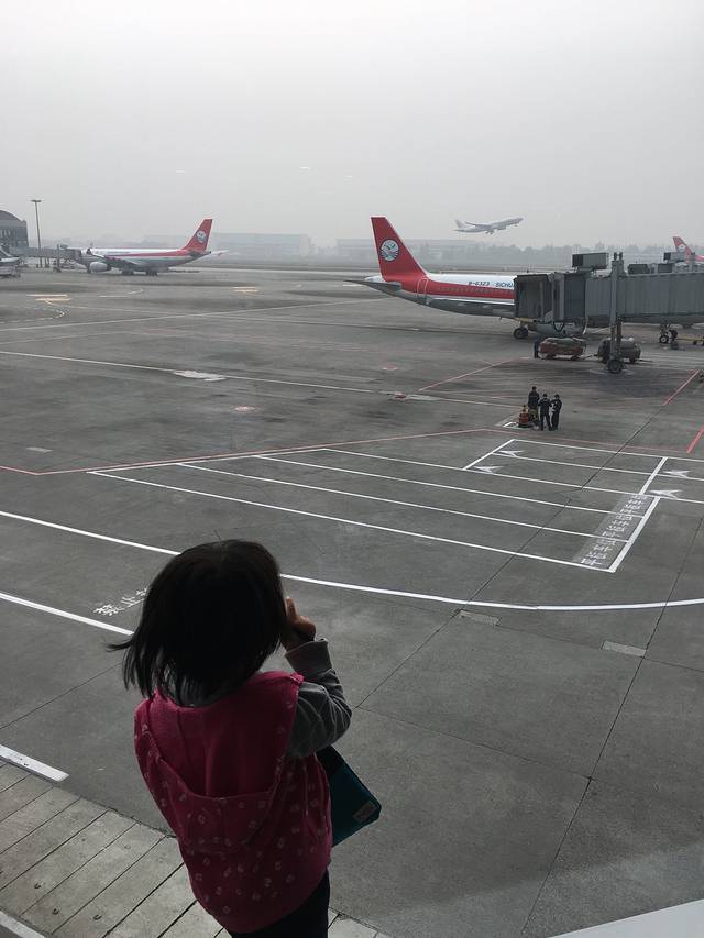 特意提前去两个小时,机场看飞机!女儿很happy,看完后不停的在描述飞机是怎么飞起来的,真是眼见大于言传啊!