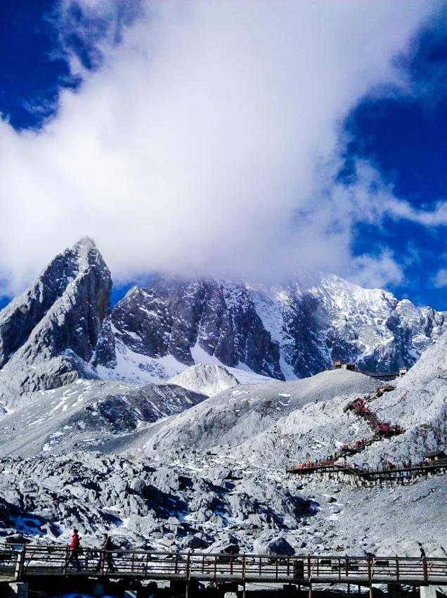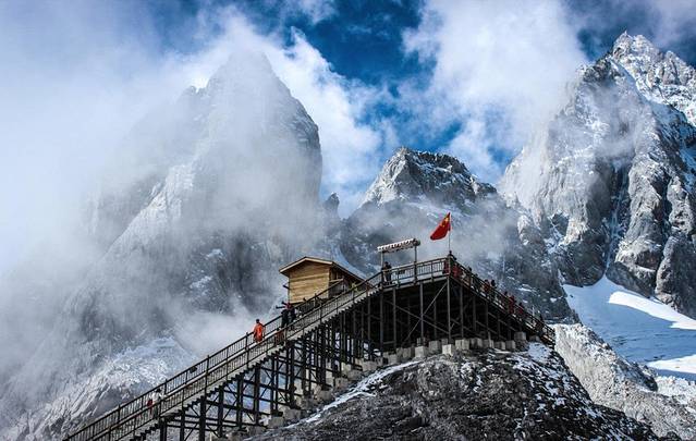 上牦牛坪。然后去白水河,乘大索道上玉龙雪山主峰扇子陡,从山上下来可以去东巴神园参观,还可以去玉峰寺、白沙村、然后返回丽江古城。