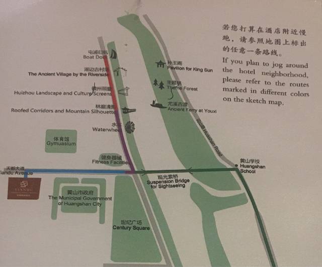 酒店准备的跑步,及附近游玩的线路图