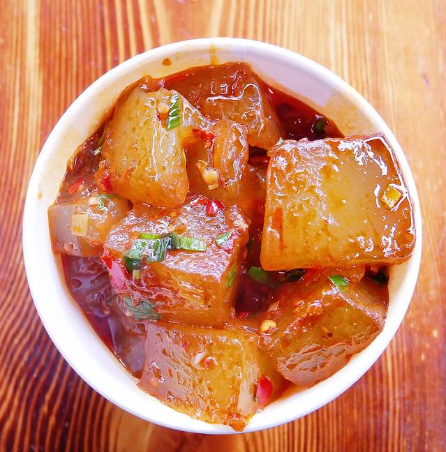 和四川的凉粉比起来,永兴坊的这道菜更加咸辣和大块,方方正正的体块显出了北方菜的一种粗犷,口味很重。
