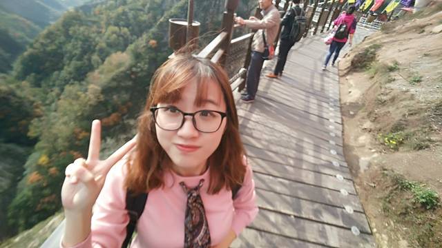 在环绕山头的窄窄的栈道上前行,放眼望去色彩斑斓的群山尽收眼底。连绵无尽,看不到山峦的尽头,反而觉得比玻璃索道更有趣味。
