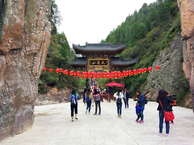 步行大约一个半小时左右,抵达了半山腰处的九龙山庙宇,据记载这个地方还有一段来历。唐贞观年间,长孙皇后曾奉旨赴香泉省亲,返回途中在皇后岭小憩,望见九龙山上峰峦叠嶂,云蒸霞蔚,宛若仙境。不禁动了修庙祈福的念头,回宫奏明皇上后,唐太宗专门派尉迟恭敬德在此监修庙宇,以便为民祈风求雨,问吉卜凶,并祈国运恒昌、后代永祚,以慰千百万敬仰神圣者思想信念之寄托。