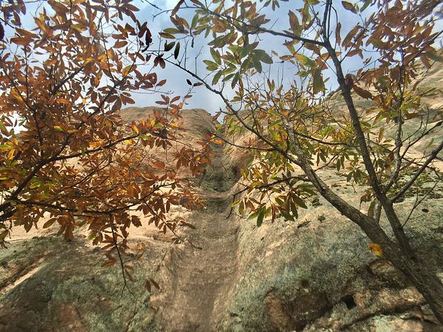 山中天朗气清,树荫茂密,越往深处走越是秋色缤纷。九龙山虽离城市不远,然而开发程度却不高,漫步山中感受到的都是原生态的山野之味,没有过多的人工开凿痕迹。