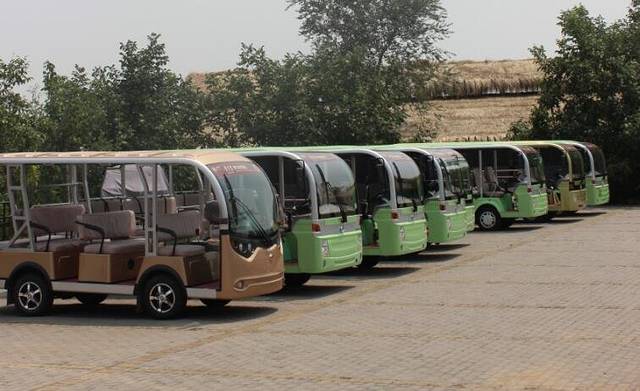买了票进山门,上一个小坡右转就能看到小交通了。