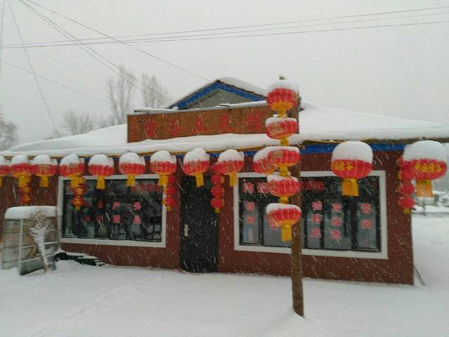 第二天一早,去雪谷的拼车就在青年旅舍楼下等候(哈市到雪谷的拼车是在网上雪谷住宿柳东升家订的,每人120,车程大约5、6个小时)中午就到达了雪谷,老板柳东升接过行李,(因为雪谷又叫东升林场,所以这个老板名字还是蛮好记的)非常热情接待了我们,顿时忘掉外面的寒冷,暖化了心窝。因为之前去过雪乡,知道那里的饭菜贵的不得了,而且我还是个无肉不欢的食肉动物,看了下老板家菜单,顿时觉得天壤之别,索性来个招牌菜小鸡炖蘑菇,88,要知道在雪乡,吃顿鸡啊鸭啊鱼之类的都要好几百,而且五常的大米也超棒。酒足饭饱休息一会之后,问了老板,附近有个游乐场,100块钱滑雪,溜冰,冰爬犁,滑雪圈随便玩,我最喜欢滑雪圈,从山上往下滑,刺激。傍晚,在高处往下看雪谷,像极了水墨画,漂亮,安静,晚上在小市逛了逛,就早早回去睡觉,为第二天的穿越做准备。