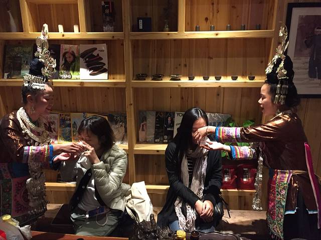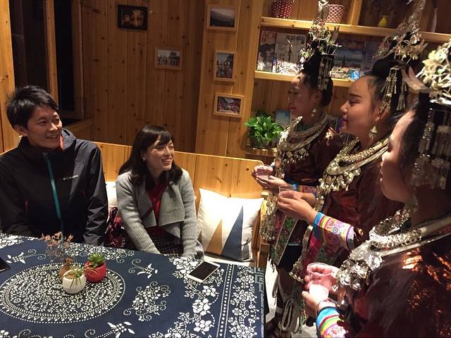 好啦,下山啦,晚上我们有侗族大歌表演,还有掌柜给我们安排了侗族妹妹敬酒,好开心呀!干杯,干杯。