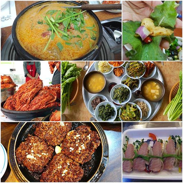鸭子汤/松亭牛肉饼/无等山大麦饭/光州韩定食/泡菜/炸生菜/斑鳐