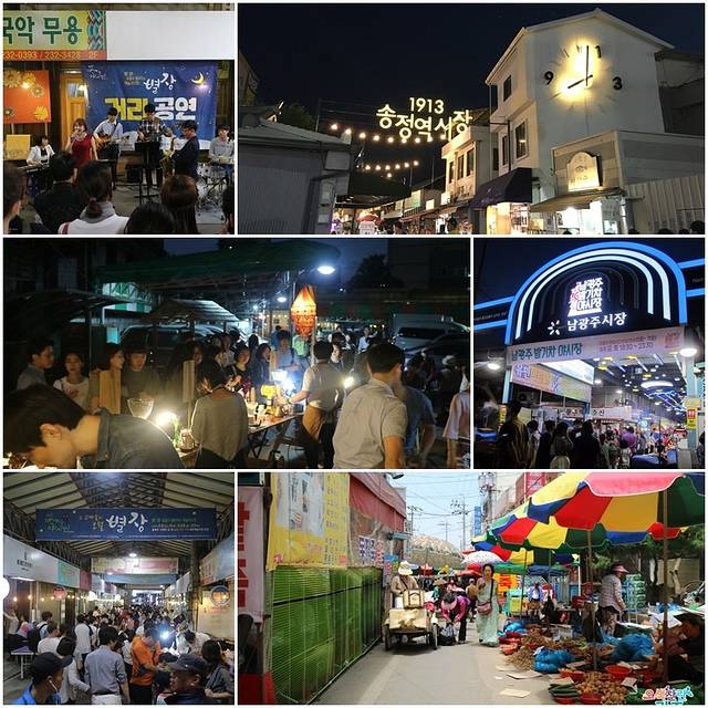 来大仁市场的话能吃到价格很便宜的米肠汤饭和喜面,很多艺术家们也参与了进来所以还能看到很多样的艺术之作和市场文化呢。南光州市场的话以前那里是铁道,后来废弃了,于是商人们就聚集此地建成了市场。大仁市场和南光州市场离忠壮路都很近,而且都是夜市型市场哦。