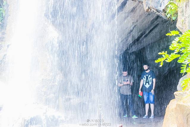 走过这片猴子拦路的地方,下面就是水帘洞,似乎没有想象中的那么壮观,也有不少人冒着瀑布的狼狈直冲洞中,比如我们身边的两位男孩子,而我们三个姑娘就想静静的看着他们……