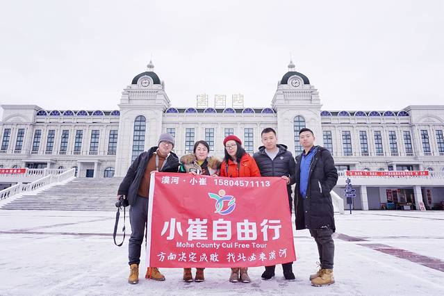 出了站,我们此行的向导小崔和他的先生小邹已在站门口等候了。他们是一个户外旅行组织者,也就是当地的向导。在漠河,这样的向导非常多,通常都要在网上事先联系好。漠河属于大兴安岭地区,幅员辽阔,据说村子和村子之间距离都得好几十公里,景点与景点自然也是非常远。当地的很多村子不通车,或者车次很少。在林子里开车,没有手机信号是常有的事情,而且马路上是没有路标的。所以当地的向导就应运而生了,只有他们才熟悉大兴安路的路线。