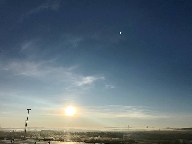 下车后,一股清冽的空气冲脑而来,旅途的困顿也随之烟消云散了,寒冷的空气总是会让人精神一震。毫无疑问,漠河的空气比哈尔滨的空气好了许多。