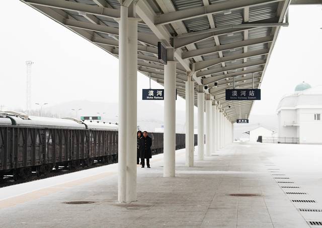 下午的列车,准备回哈尔滨。昨夜的雪给漠河车站披上了一层新装,几只流浪狗在雪地里追逐觅食。随着开车将近,这座冷清的小站又逐渐热闹了起来。