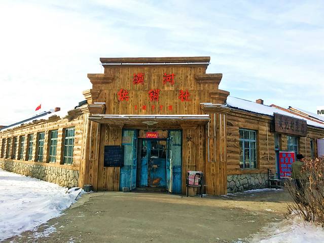 太阳很暖,照射在白雪之上闪闪发光,整个北极村以其明媚的姿态迎接着我们。进入北极村,给我的感觉俨然是一个北方的小镇。这里有邮局,有车站,甚至还看到了记忆中的供销社。
