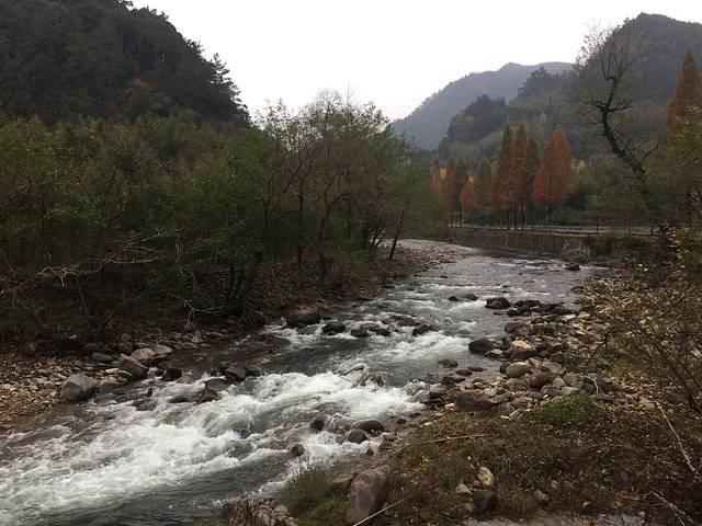 刚下车步履不久,就听到那秋日的溪水潺潺流淌之声,轻灵而不失优雅,两旁渐黄的树叶述说着秋语的呢喃。