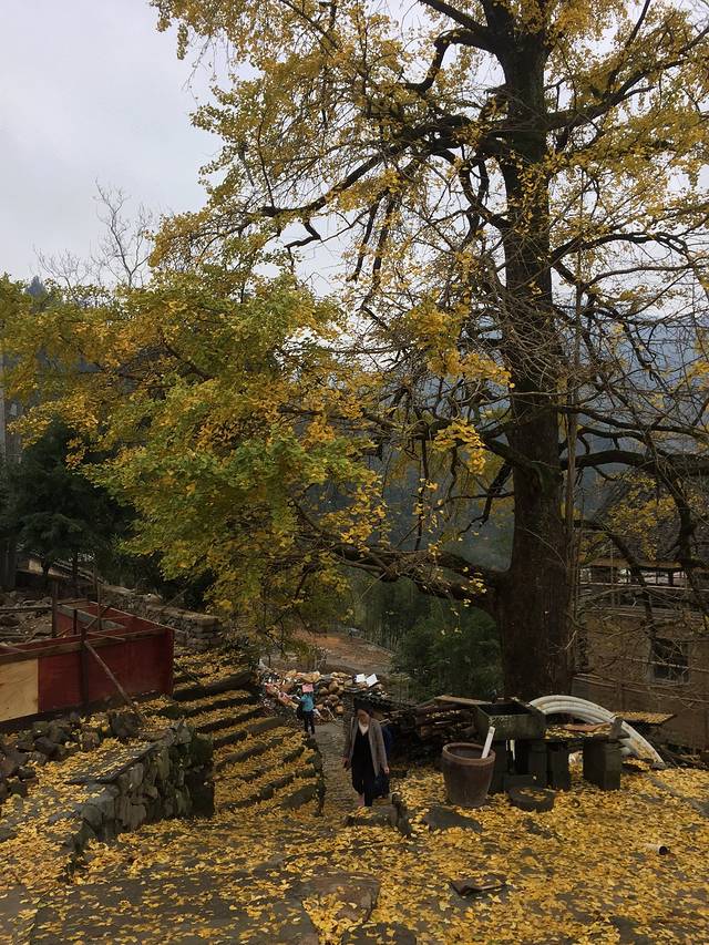 步进山口之际,一棵百年银杏古树映入眼帘,看着那秋味渐浓的落叶🍂,不由得想起了很多关于秋的散文:郁达夫,老舍,朱自清等等,无不爱这秋,这秋之味。
