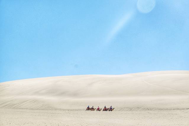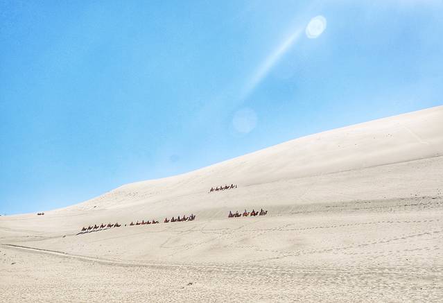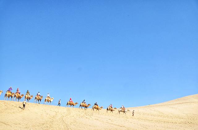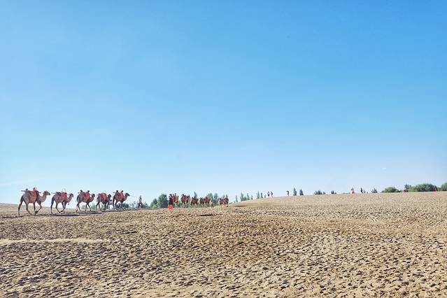 3、景区内的部分工作人员会厚脸皮跟游客要小费,比如你骑在骆驼上帮你拍照,比如你想骑着骆驼上到沙丘顶上溜溜,不给小费,嘿都甭想了。别期望工作人员的拍照技术有多好,建议你跟同行的小伙伴一前一后骑骆驼,想要被拍照的话坐朋友后面。