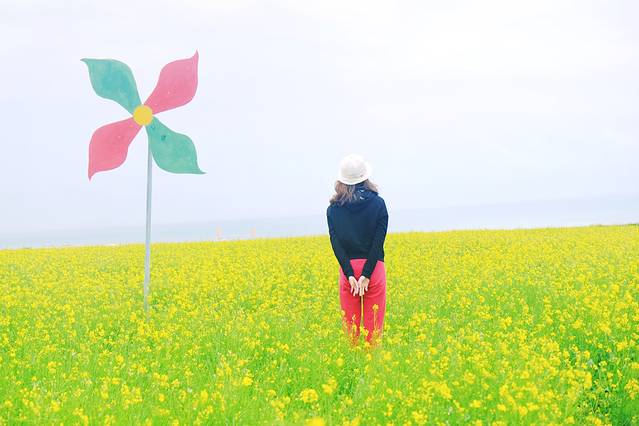 8月初,油菜花田已败了许多,有几亩仍在盛开的油菜花等候着迟到的旅人,据说它开的正好的时候,漫山的油菜花田与辽阔的青海湖交相呼应,景色迷人得让人惊叹。希望所有迟到的时光,在未来都能有机会弥补。