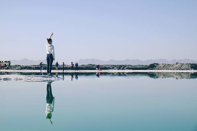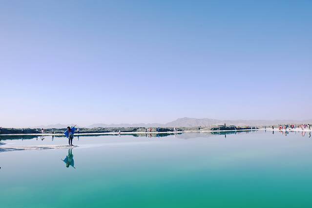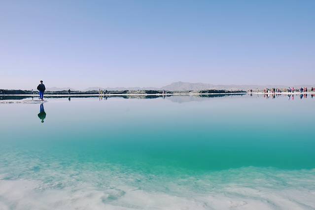 漫步湖面上,进入了盐的世界。在满是人人人的茶卡盐湖,避开人群拍照还得到更里面。如果天气不好,不太建议去茶卡盐湖。天气晴朗,蓝天白云都出来了,才能拍出“天空之境”的美感。