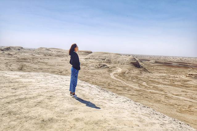 不过好多妹纸都挺厉害的,爬得老远了,就为了拍一溜“西域公主”大片。穿红色衣服的姑娘最多,我个人觉得白色服装更好看,能呈现出那种干净的美,大西北一路你都可以穿白色衣服拍拍拍。也可以带一件红色披肩,让画面有一丝丝色彩就好。